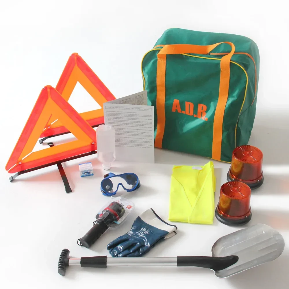 Комплект ADR для классов 4.2, 5, 6.2, 7: защитные очки, фонари. Для перевозки опасных грузов с риском самовозгорания, инфекций, радиации.