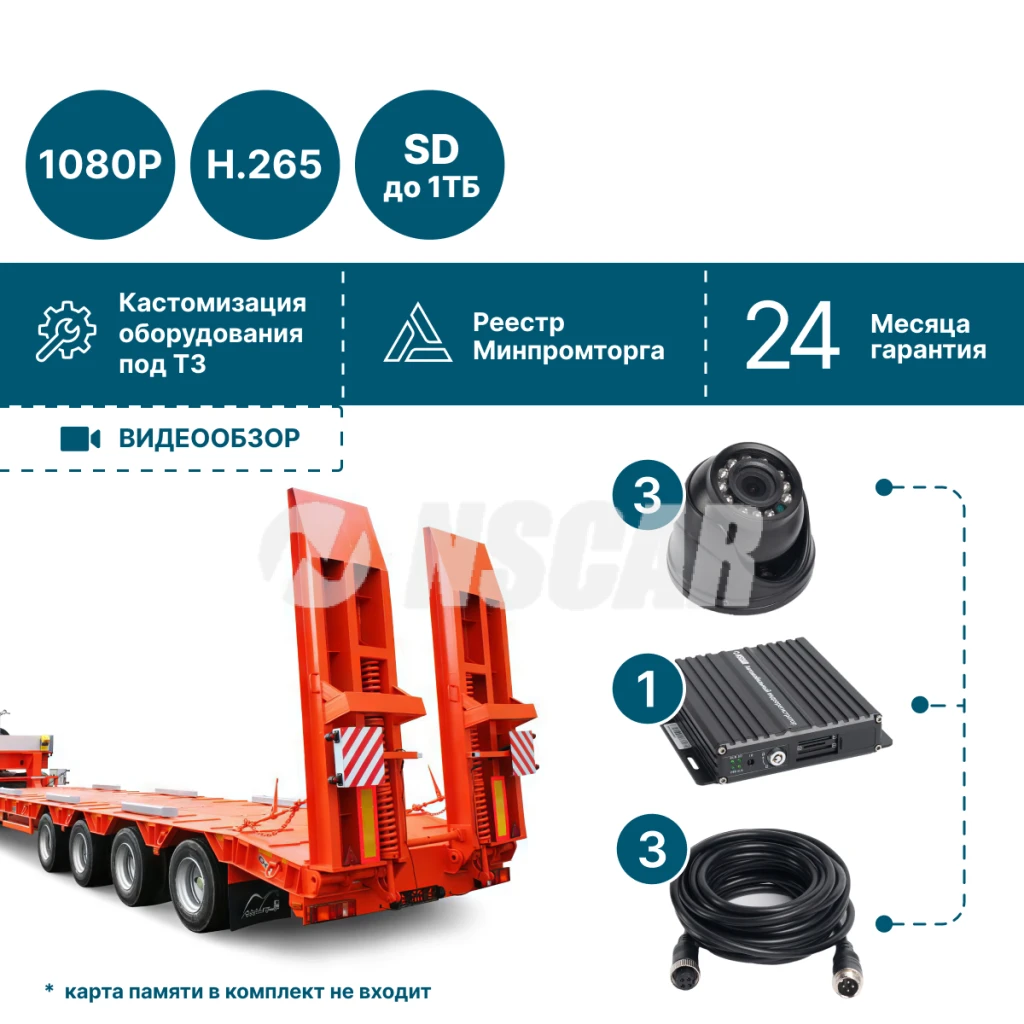 Комплект видеонаблюдения для грузового транспорта на 3 камеры NSCAR GT301_SD